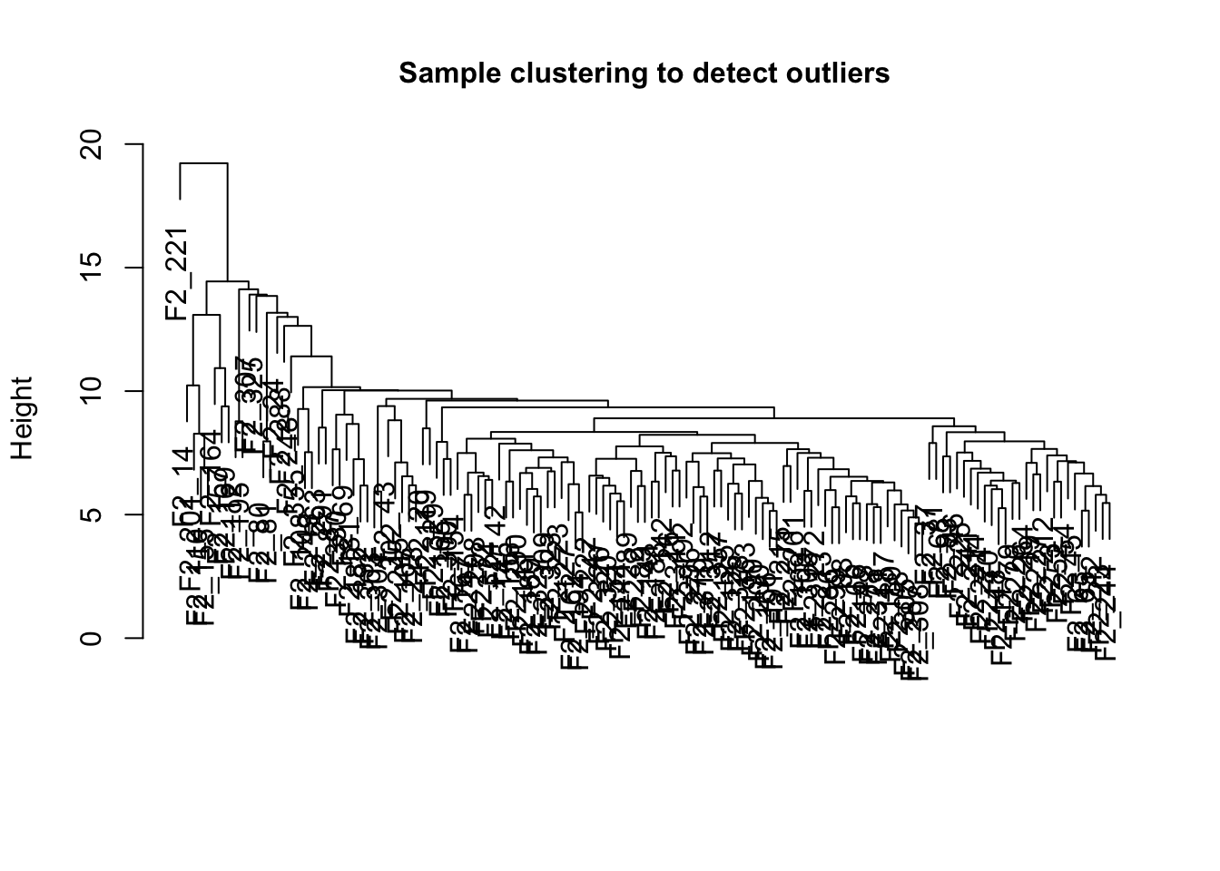 }我们可以使用数据对样品进行聚类,然后观察有哪些明显的outlier samples.